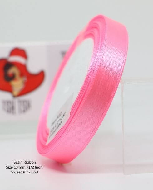 ริบบิ้นผ้าซาติน ขนาด 13 มิล สีชมพูกลาง เงา 1 หน้า ยาว 50 หลา 05#